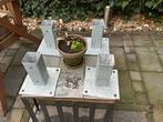Vier metalen paalvoeten, gebruikt maar in goede staat. Ideaal voor het maken van een tafel, overkapping of schutting. Inclusief sc