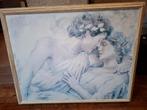 Prachtig schilderij in griekse stijl, met een afbeelding van een liefdespaar. Het schilderij heeft een mooie, gedetailleerde omlijsting die de klassieke uitstraling versterkt. Een echte blikvanger voo
