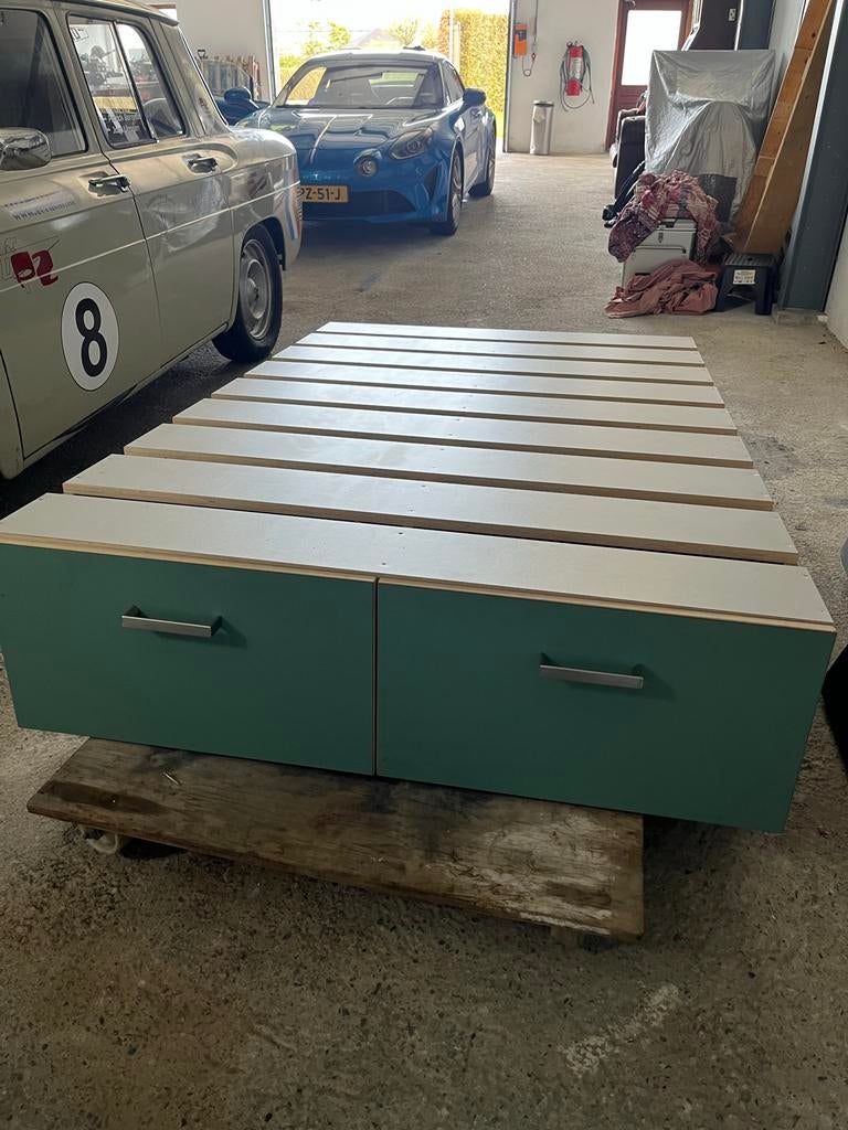 Camper slaapunit met lades / inbouwbox, zeer zware kwaliteit. Stevige slaapunit met twee uittrekbare lades, ideaal voor in een camperbus. De unit is 1,92 meter lang en 1,23 meter breed. De lades zijn Zo goed als nieuw Ophalen