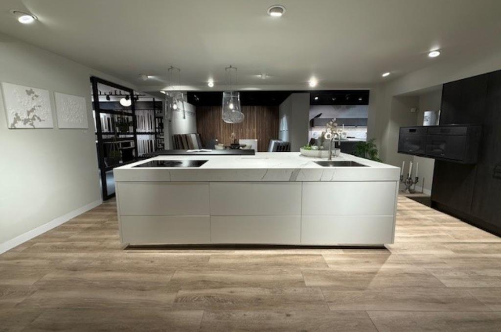 Moderne haecker designkeuken – hoogglans wit eiland met 14cm dik keramiek blad en stijlvolle kastenwand eiland= 3 meter breed 1.5 Meter diep kastenwand= 2,4 meter breed licht, luxe en verfijning komenZo goed als nieuw Ophalen