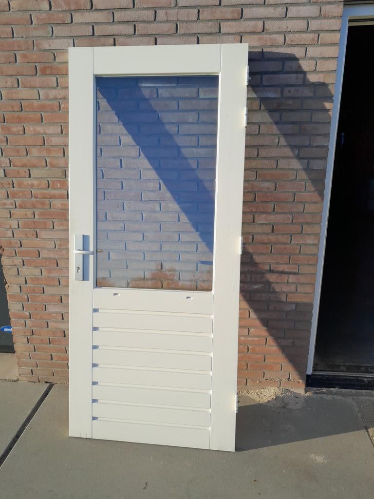 Te koop nette gebruikte achterdeur. Merbau hardhout 930 x 2115 met dubbelglas, meerpuntsluiting incl sluitkommen, ami veiligheidsbeslag en 4 scharnieren. 0620892434
