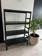 Mooi zwart rotan wandrek / wandkast. Ideaal voor het opbergen van spullen of het decoreren van je interieur. In goede staat. Maat: hoogte: 1.22Cm breedte: 80 cm diep: 33 cm kast kan direct opgehaald w