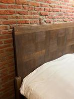 Een grenen hoofdbord. Ambachtelijk vervaardigd uit bestaande meubelonderdelen. In een warme mahonie kleur afgewerkt, pigmentolie en meubelwas, om het hout goed te laten uitkomen. Het geheel is demontaZo goed als nieuw Ophalen of Verzenden Tweepersoons