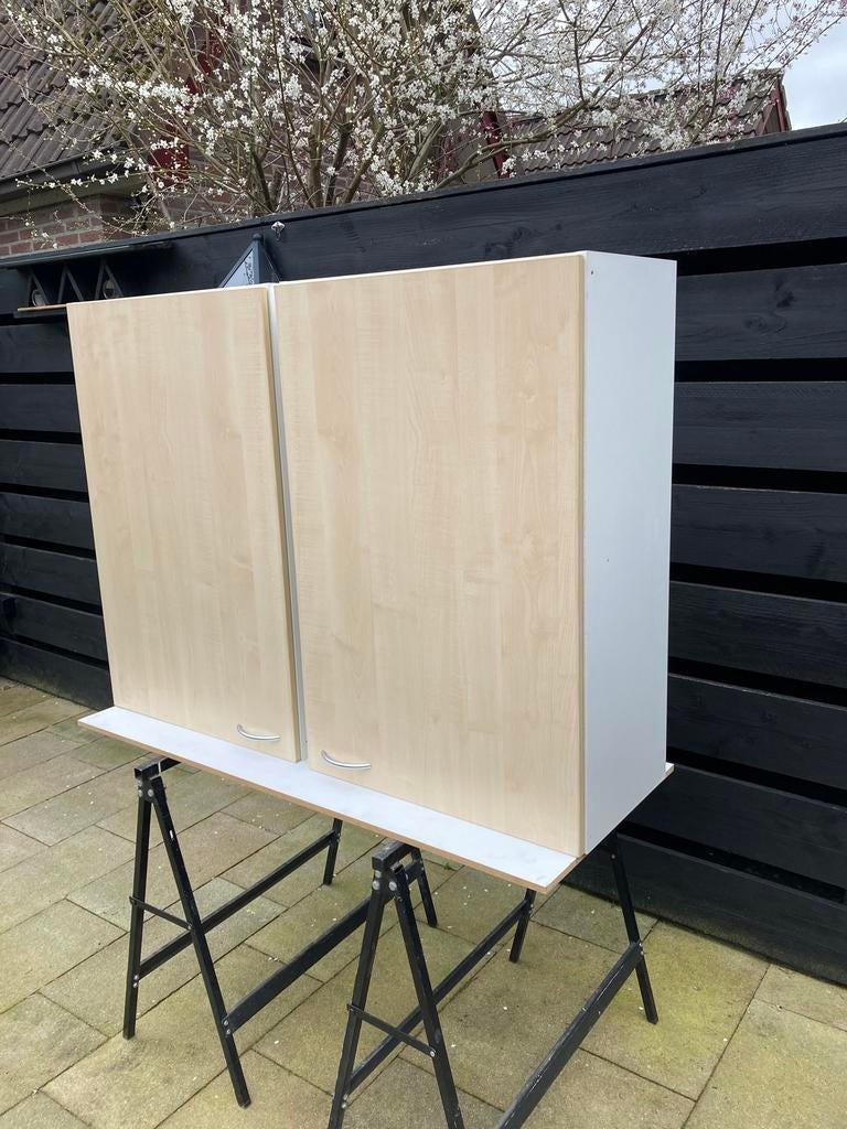 Ruime kledingkast / opbergkast met deuren en veel opbergruimte. De kast is in gebruikte staat, maar nog prima te gebruiken. Ideaal voor extra opslag in de slaapkamer, zolder of garage. De kast is voor