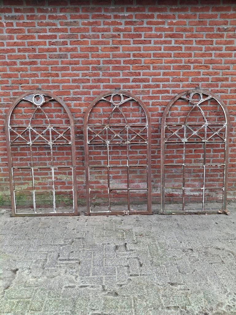 Antieke gietijzeren kloosterramen drie stuks