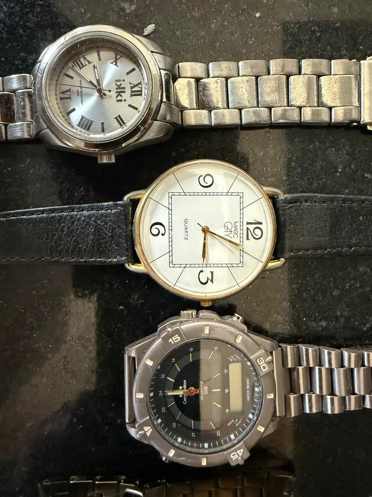 Aangeboden: een partij van 5 diverse horloges, ideaal voor de hobbyist of verzamelaar. De werking van alle horloges is onbekend en ze moeten nagekeken worden. Perfect voor onderdelen, reparatieprojectGebruikt Ophalen of Verzenden