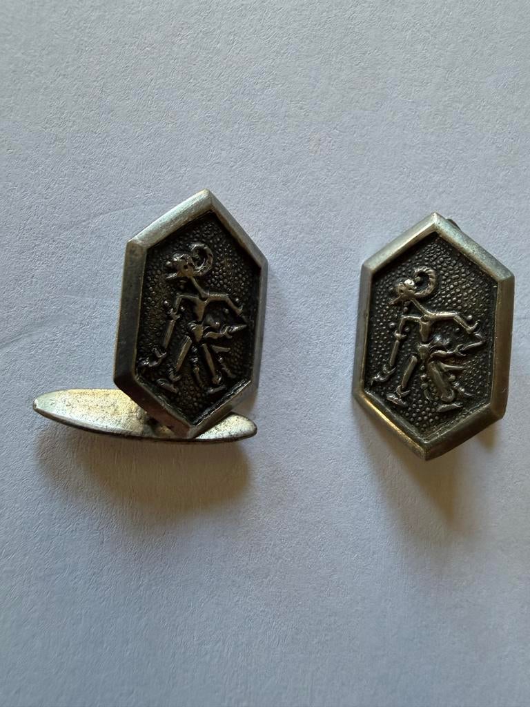 Vintage Zilveren Manchetknopen met Figuur