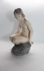 Meisje op steen van royal copenhagen nummer 4027 gemaakt door adda bonfils tussen 1974 - 1978 hoogte 15 cm