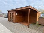 Wij ruimen deze twee blokhutten op. Blokhut brenda 525x 275cm foto 1-7 verkocht showmodel staat nu een jaar in de showtuin en model is uit het assortiment. · Geschaafd, gedroogd vuren · dikte wand 28