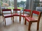 Deze houten kinderstoelen zijn van stevig beukenhout en stapelbaar. De zithoogte is 26 cm.