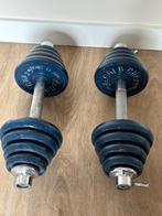 Halterset met gewichten van: 4 x 2,25 kg 4 x 1,75 kg 4 x 1,25 kg 4 x 0,75 kg tesamen met de halterstang max gewicht per halter van 15 kg. Let op: bij verzenden is het maximale toegestane gewicht 23kg.
