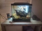 Compleet aquarium van superfish pomp heater en verlichting in de kap zeer fijn zwart grind stenen en mooi passend stuk hout compl