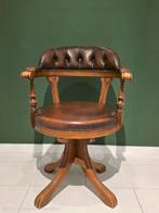 Een klassieke draaibare bureaustoel met een comfortabele lederen bekleding. De stoel is in goede staat en heeft een mooi patina stevige 360 graden draaibare. Perfect voor een studeerkamer of kantoor m