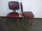 2x scandinavische vintage eetkamerstoelen in bordeaux. Deze stoelen combineren een tijdloze uitstraling met comfort, perfect voor elke eetkamer. De houten poten en leren bekleding zorgen voor een stij