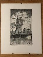 Ets van molen de gooyer in amsterdam door j.h.kruger uit 1981. 24 X 30 cm.