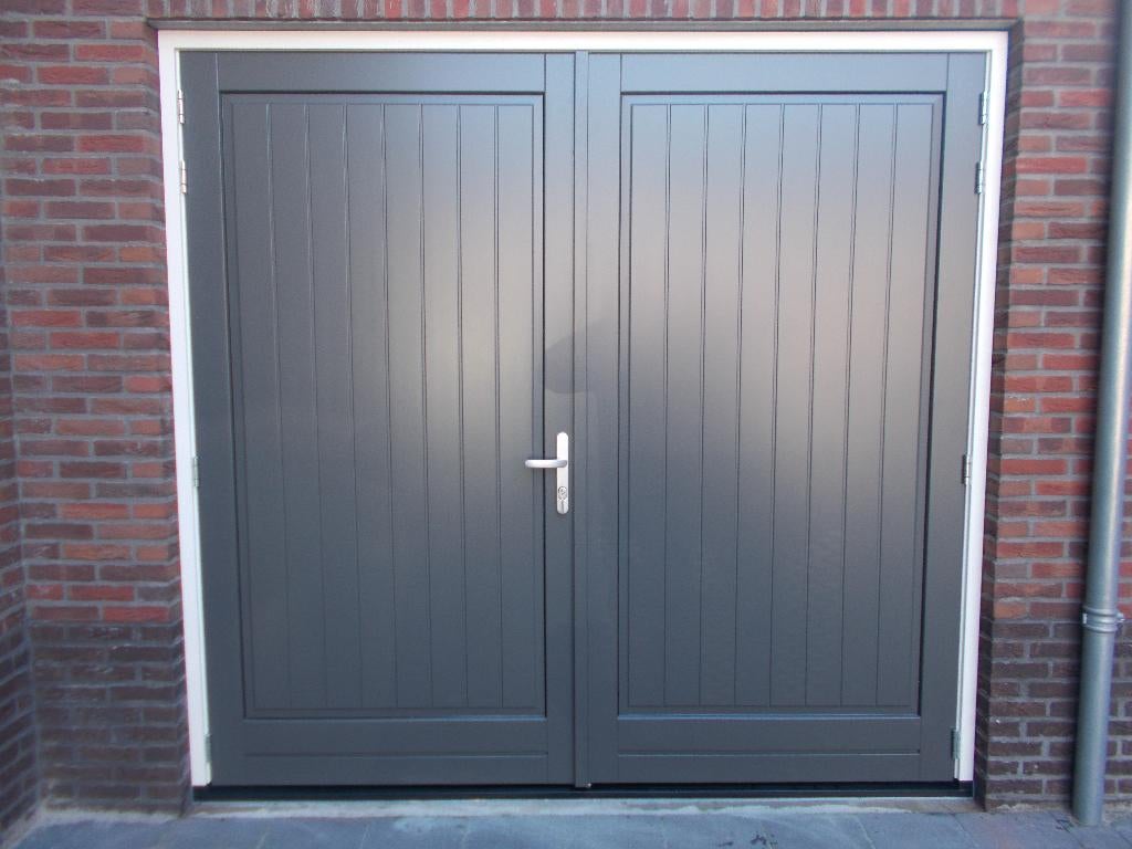 Aktie !!! 60 Mm dikke geisoleerde garagedeuren. - Geintregeerde stolpsluiting met 1 hendel bediening passieve deur - meerpuntssluiting met veiligheidsbeslag en cilinderdoortrek beveiliging actieve deuNieuw Ophalen of Verzenden