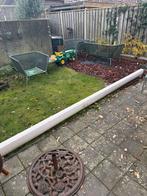 Goed werkend knikarmscherm met somfy rts motor, bediend met handzenders. Het framewerk is in de kleur 9001 en het doek is licht wi