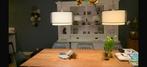 Stijlvolle eettafellamp met een witte lampenkap en zwarte accenten. De lamp is voorzien van een snoer en fitting, klaar voor gebruik. Perfect voor boven de eettafel of in de woonkamer. Geeft een mooi