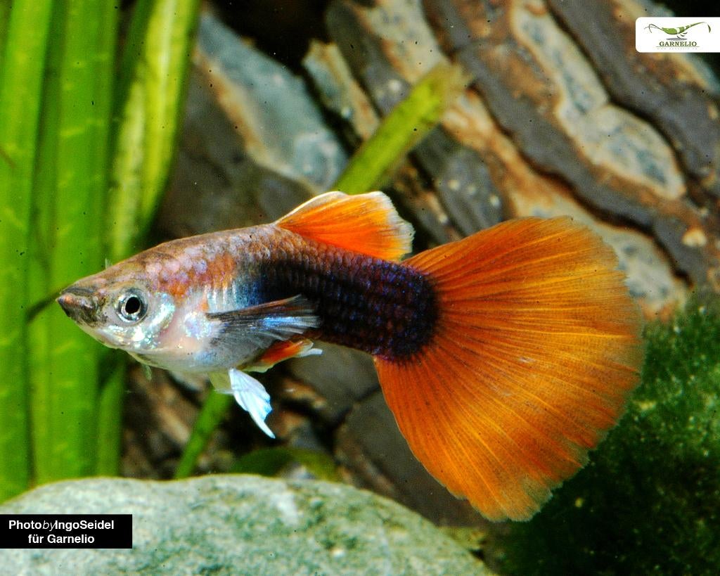 Naam: poecilia reticulatus, lebistes reticulatus golden red tuxedo nederlandse naam: guppy golden red tuxedo maat: 4 cm. Herkomst: midden amerika temperatuur: 22-28 ph: 7 moeilijkheidsgraad: enige ken