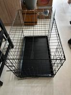Bench, kennel, dierenhok gebruikt zwart kunststof bodem afmeting 92 breed, 58 diep, 64 hoog deurtje aan de smalle kant en aan de brede kant. Wij hebben het gebruikt voor een kitten. €20