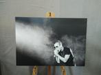 Set van 2 vintage design banken, 2- en 2 1/2-zits. Lindegroene alcantara bekleding op paars lederen romp. Setprijs € 250, -- en per stuk € 150,--. Afmetingen l x b x h: 184 x 90 x 80 en 164 Gebruikt Ophalen Vierpersoons of meer