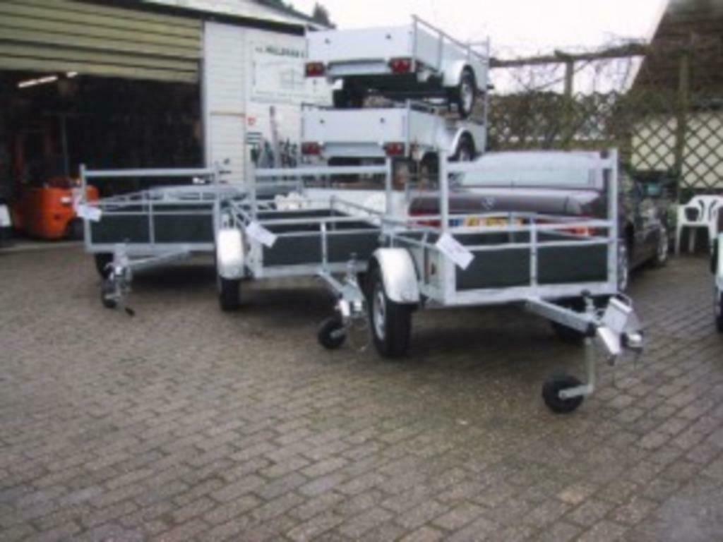 Te koop nieuwe goedgekeurde ongeremde aanhangers 257 x 130 cm buitenkant bakmaat voor € 745,- incl btw compleet met dekzeil, koprek, rvs nummerbord klemmen en een goedgekeurd slot, neuswiel en k