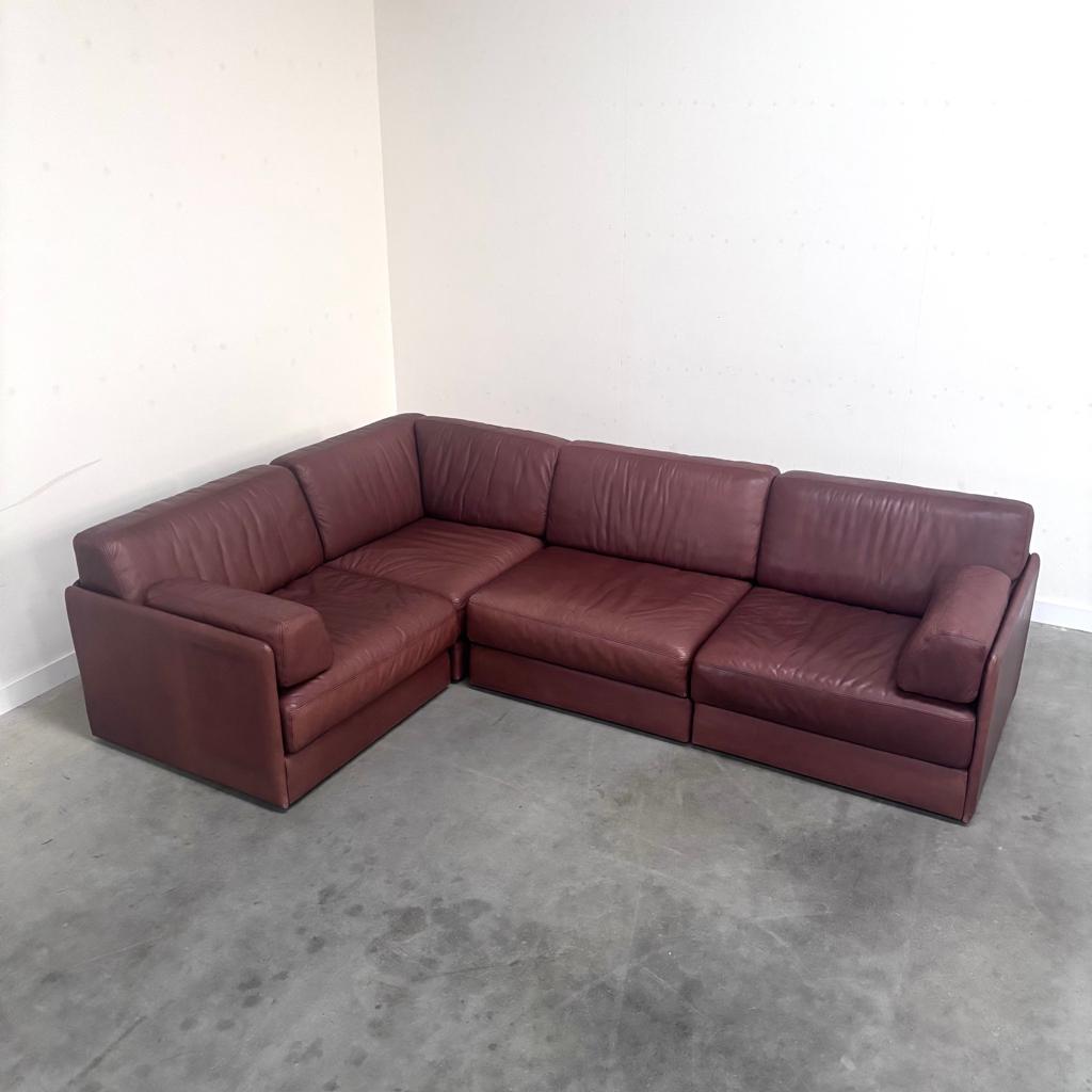Modulaire bank van de sede, model ds 76, zwitserland jaren 70. Kan in een hoek- of rechte opstelling worden geplaatst. Vier elementen bekleed met bruin leer. Alle elementen zijn in uitstekende; zo goeGebruikt Ophalen Vierpersoons of meer