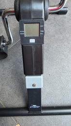 Dit is een tafel fiets van het merk crane. Het apparaat heeft een schermpje dat rpm, cnt, time en cal kan weergeven. De pedalen hebben bandjes.