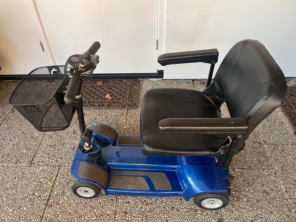 Te koop, mooie inklapbare scootmobiel makkelijk mee te nemen achter in de auto. Ideaal voor een dagje weg of camping. Snelheid 6km/u. (Wandelsnelheid) nieuwe accu’s incl lader
