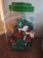 Een pot vol met diverse speelgoed boerderijdieren en planten. Leuk voor kinderen om mee te spelen en hun fantasie te gebruiken. De conditie is gebruikt, maar nog in goede staat.