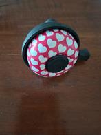 Leuke fietsbel met een rood-witte hartjes print. De bel is gebruikt, maar in goede staat en klaar voor een nieuwe fiets!