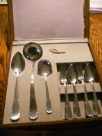27- delig bestek in doos, ca. 85 Jaar oud. Geschat wordt dat dit bestek uit ca. 1939-1940 Stamt. 1 Juslepel mist uit de doos. 12 Lepels,12 vorken en 3 opschep lepels. Voor info of een bod wil doen, emGebruikt Ophalen of Verzenden