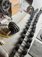 Hierbij biedt ik mijn halterstang met de volgende twee gewichten aan: 2x25 2x20 2x15 2x5 4x1,25 ook worden er twee losse stangen e
