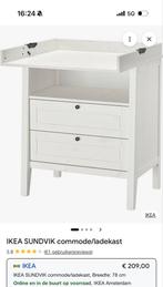 Ikea sundvik commode/ladekast in het wit. Ideaal de commode is gebruikt. Maar doet het prima. De klep is weg. Afmetingen: breedte 78 cm, diepte 50 cm (uitgeklapt 78 cm), hoogte 99 cm (met opklapbaar b