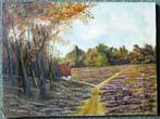 Mooi landschap schilderij olieverf op doek 40 x 52,5 cm in fraaie goudkleurige lijst 52 x 64 cm de sticker op de achterzijde van de lijst is van de kunstschilder j.h. Van beek, die meer de 100 jaar ge