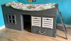 Mooie, houten halfhoogslaper met veel opbergruimte. Het bed is in goede staat en biedt een leuke speelplek onder het bed. Ideaal v