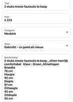 Set van 2 Comfortabele groene fauteuils - Zo goed als nieuw