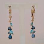 Nieuw geelgouden 18 karaats plated creolen met londen blue en licht blauwe zirkonias vormen van de zirkonias markies en briljant en peer vormig gekreg