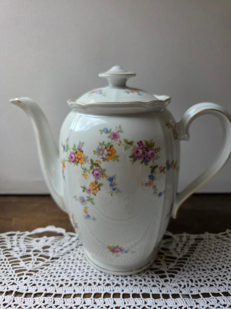 Franse Limoges theepot met roosjes bloemetjes rand