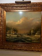 Winterlandschap op paneel met lijst; breed 1.18M hoog 1.08M zonder breed 0.79M hoog 0.68M