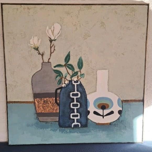 Acryl schilderij stilleven vazen bloemen - Cameliero, Ophalen