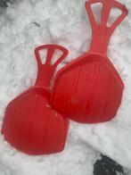 Twee rode kinder sleetjes. Pannenkoekjes ;-) twee euro per stuk.