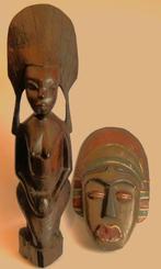 Dit ebben houten beeld afkomstig uit west afrika een staand man figuur met zijn kleine zoon inbescherming met typisch decoratieve stijle .dit beeld is ca 49 cm en weegt 979 gram kan afgehaald worden r