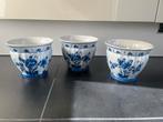 Set van drie prachtige delfts blauwe bloempotten van de porceleyne fles. De bloempotten zijn in perfecte staat en hebben een klassiek bloemmotief. Een mooie aanwinst voor elke tuin of interieur.