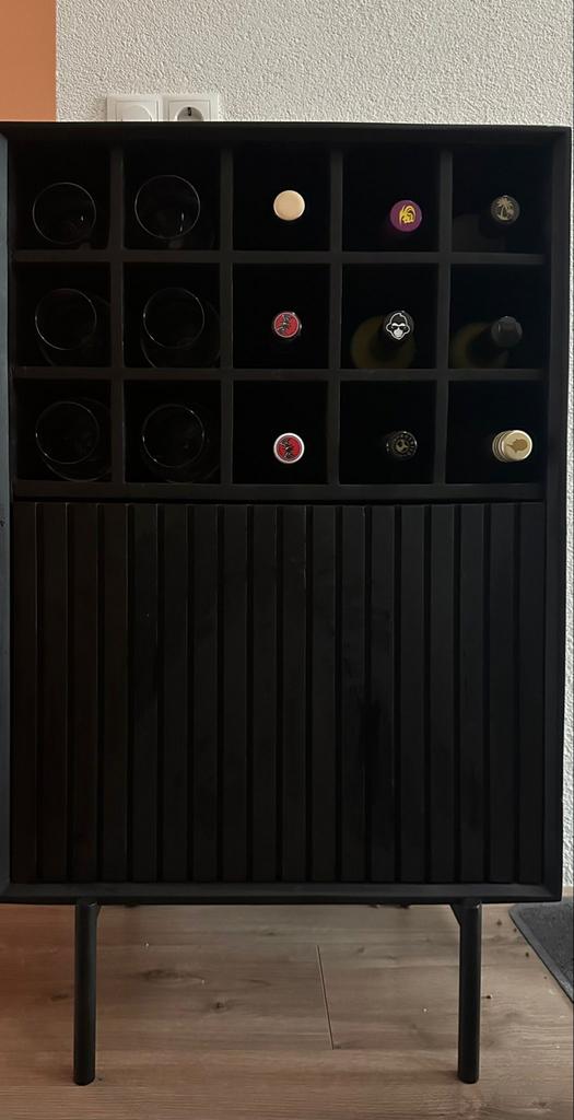 Mooie en praktische wijnkast of drankenkast. Biedt ruimte voor diverse flessen en glazen. Hij is nog in nieuwstaat! Maten, 90cm x 55cm x 35cm mooi te gebruiken voor flessen wijn of andere soorten dranZo goed als nieuw Ophalen