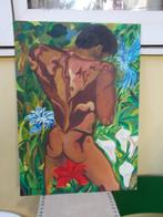 Te koop en uitsluitend op te halen: kleurrijk, origineel schilderij op canvas board van talens. Size (formaat) 50 bij 70 cm, foto's 10 en 11. Het is linksonder gesigneerd en gedateerd, zie foto 6.