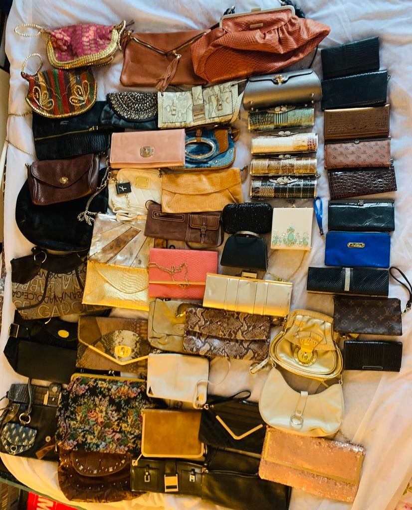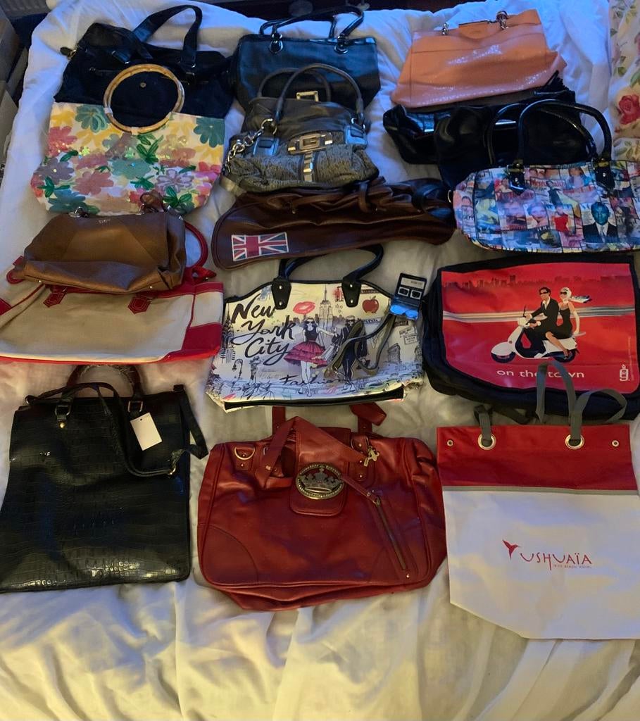 Circa 50 tassen en 10 portemonnees alles in één koop €60 dus geen losse verkoop helaas