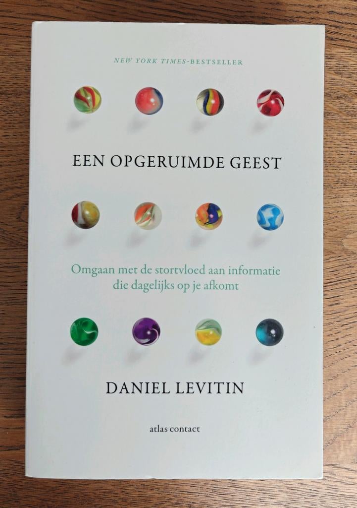 Dit is het boek 'een opgeruimde geest' van daniel levitin. Het boek gaat over omgaan met de stortvloed aan informatie die dagelijks op je afkomt. Het is een new york times-bestseller. Isbn 978