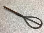Antieke klopper 19de eeuw. Met, houten handgreep en gedraaid verenstaal, 53 cm lang. Voor o.a., Kloppen van kleden, tapijt, deke