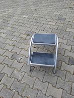 Een opstapje met twee treden. De treden hebben een antislip laag. Handig voor bij de caravan of camper.
